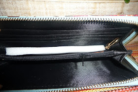Ich habe lange überlegt, ob ich mit dieser Geldbörse zurecht komme, denn sie hat im Endeffekt nur ein großes Fach. Dieses ist zwar unterteilt in verschieden große Fächer, aber ich habe sehr viele Karten und andere Sachen, die in dieser Geldbörse Platz finden müssen. Die eine Seite ist für die Geldscheine gedacht Diese passen auch sehr gut dort hinein und müssen nicht geknickt werden. Auf der anderen Seite sind die Fächer für die Karten. Insgesamt sechs kleinere für Karten und ein größeres, wo man Ausweis etc. unterbringen kann.